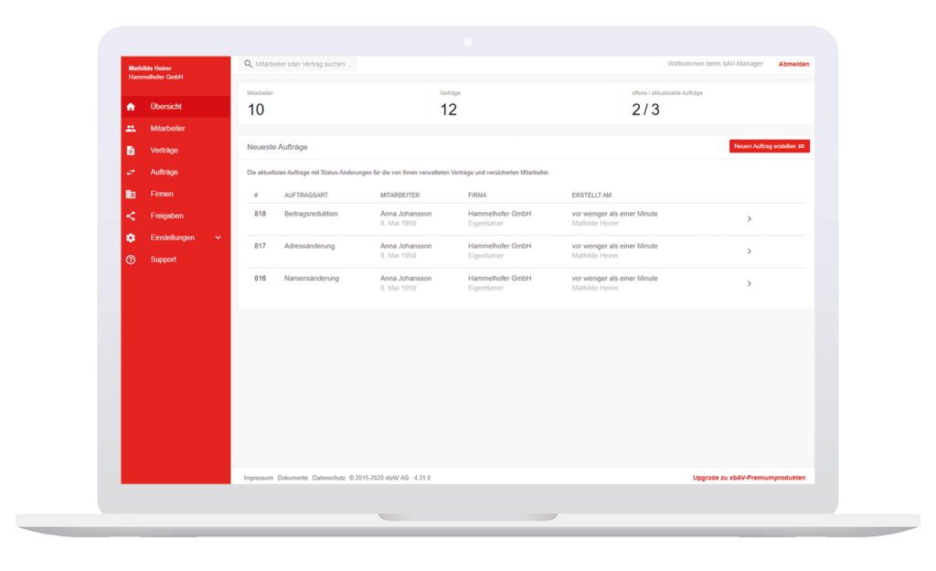 bAV-Verträge aller Mitarbeiter selbst, direkt, digital und zeitgemäß verwalten